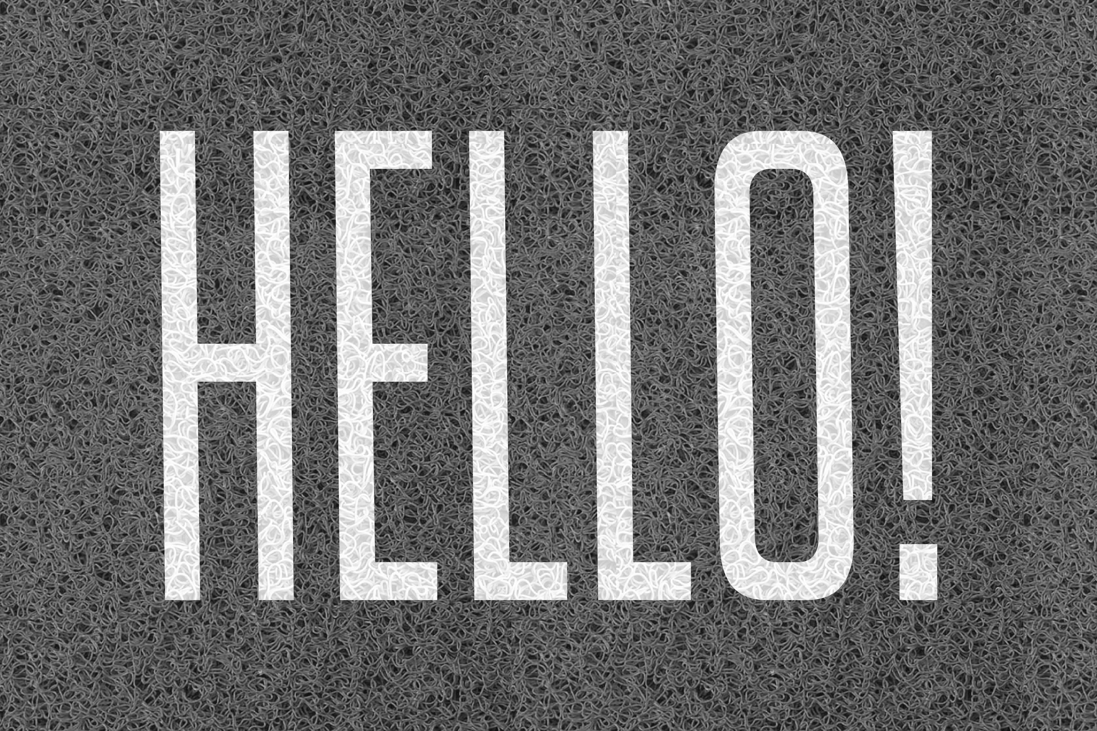 Tapete capacho de vinil com fibras entrelaçadas e base emborrachada, com arte pintada em tinta vinílica especial.